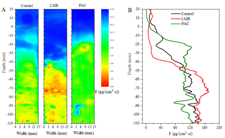 论文采用了Rhizon采样器和梯度薄膜扩散技术(DGT)这两种被动采样方法,主要研究了P、Fe、Mn、Cd、Co和Pb在镧改性膨润土(Phoslock®)和聚合氯化铝(PAC)钝化沉积物中的行为。镧改性膨润土可降低表层5 cm深度的DGT-有效磷通量,而DGT-有效磷与铁的相关性表明可移动磷迁移受到铁的影响。聚合氯化铝对可移动磷的控制效果具有不稳定性,在沉积物深度1.5 cm处对可移动磷的控制效率反而低于其他深度沉积物,这主要是受到了铝絮体吸附和三价铁还原溶解的综合作用。研究结果为原位钝化技术的工程优化提供了重要参考。