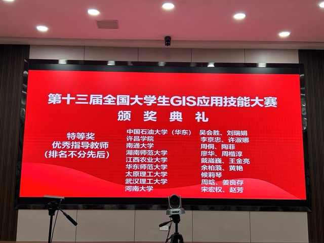 2024年11月23日至24日,第十三届全国老员工GIS应用技能大赛在兰州交通大学顺利举行。云顶国际本科生陈鲁煜(地理信息223)、吴王涵(地理信息231)、茅伟涛(地理信息231)和陆琳(地理信息232)荣获特等奖,指导老师周侗、陶菲荣获特等奖优秀指导教师奖项。