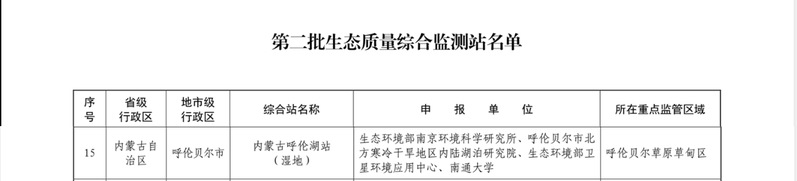 近日,生态环境部办公厅发布《关于印发第二批生态质量综合监测站名单的通知》(环办监测函〔2024〕463号),公司参与申报的内蒙古呼伦湖站(湿地)正式获批。综合站是生态质量监测网络的重要组成部分,在区域生态质量监督监测与评价工作中发挥“控制性”作用。生态质量综合监测站在全国生态质量监督监测与评价工作中发挥“控制性”作用,主要任务是 “样地监测、积累数据;天地一体、地面验证;发现问题、服务监管,专题研究、培养人才”。