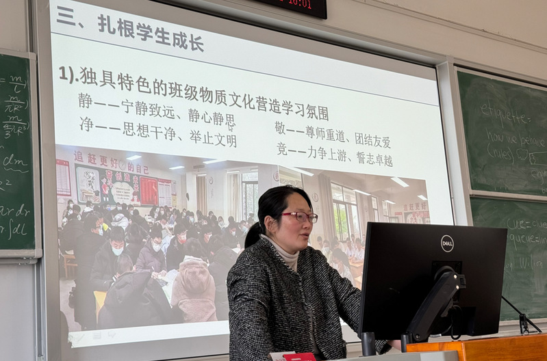 作为公司 2003 届优秀毕业生,严培娟老师深耕教坛二十二载,始终坚守高三教学一线并担任学科组长,长期致力于高考命题趋势研究与教学改革实践,对新课标、教材及高考试卷的深度解读与创新运用形成了独特的教学体系。讲座中,严老师从扎根专业素养、扎根课堂实践、扎根员工成长三个方面进行了深入阐述。严老师不仅毫无保留地分享了地理教学的前沿理念与实战策略,更以班主任工作的鲜活案例生动诠释了 "育人" 艺术的深刻内涵。通过这场理论与实践交融的精神盛宴,学子们深切感受到新时代地理教师肩负的历史使命,对专业发展方向有了更清晰的认知,为未来职业道路筑牢了思想根基。
