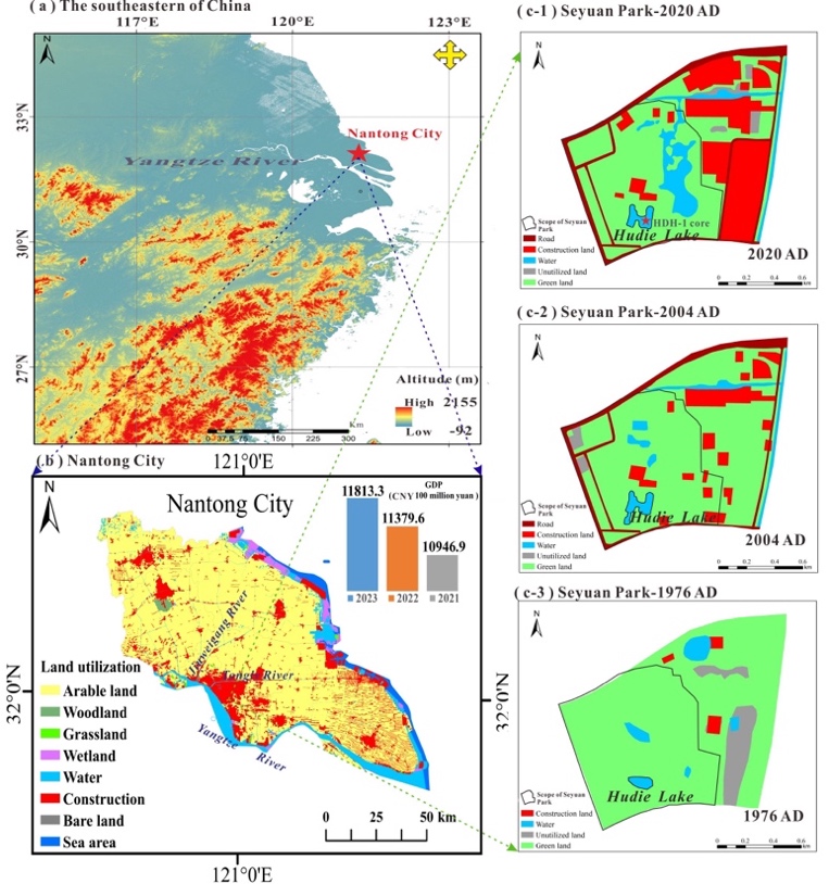 城市湖泊是现代城市水系统和景观设计的重要组成部分,在城市生态文明建设中发挥着重要作用。然而,近年来,城市湖泊生态系统的退化日益严重,尤其是蓝藻水华频繁发生,直接威胁到湖泊生态系统服务功能的维持和城市可持续发展。本研究钻取了长江三角洲地区过去百年来未被清淤过的典型城市湖泊——蝴蝶湖中沉积物岩芯样品。构建其年代序列(自1810s至2020s),分析沉积物中有机质、粒度、营养盐等参数,重建了该湖泊环境长期变化过程及驱动机制。研究结果表明,作为高度发达地区的典型城市湖泊,蝴蝶湖显著受到城市化进程的影响。随着城市的快速发展,湖泊中有机质和营养盐水平逐年上升,特别是磷含量显著增加,成为近年来湖泊水华爆发的关键驱动因子。蝴蝶湖的生态环境还受到周边河道变迁及人类活动的影响。在早期阶段,湖泊受河流动态的影响大于人类活动。但自20世纪60年代起,随着城市建设加剧、经济快速发展以及湖泊周边土地利用类型的变化,进入湖泊中的有机质和营养盐浓度持续增加,使得湖泊原有生态环境受到扰动并退化,进而导致近年来夏季蓝藻爆发现象产生。该研究揭示了人类活动与自然因素共同驱动了城市湖泊环境的变化。